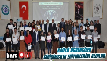 Kars Olay-Tıp Fakültesi Konferans Salonu’nda düzenlenen törene, İktisadi ve İdari Bilimler Fakültesi Dekanı Prof. Dr. Adem Üzümcü, KOSGEB İl Müdürü Lütfullah Aktaş, Sanayi ve Teknoloji İl Müdürü Tarkan Tarık Kocagöz, akademisyen ve öğrencilerimiz katıldı.