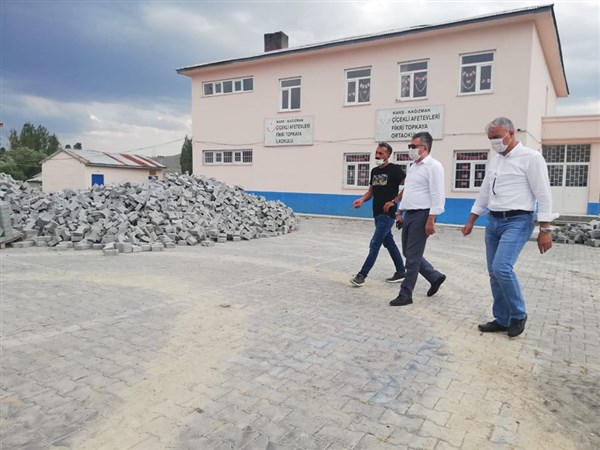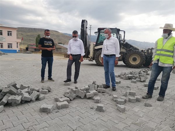 Kağızman çiçekli Afetevleri konutlarında yapımı devam eden parke taşı döşeme çalışmasını yerinde inceleyen Kaymakam Çınar çalışmalaın hızlanması için yekililere talimat verdi.
