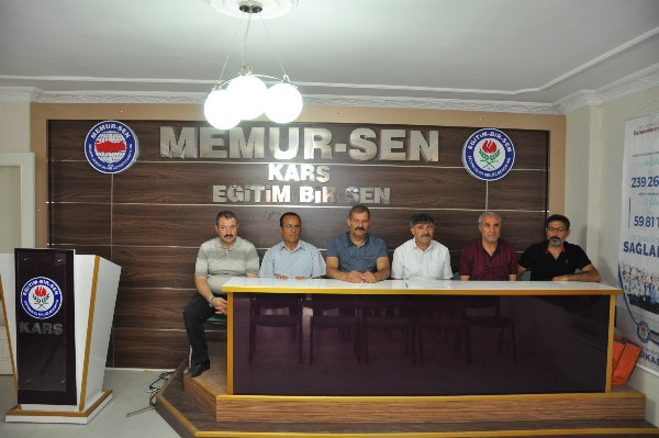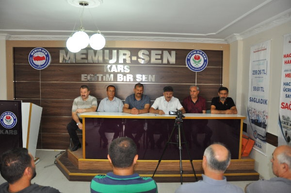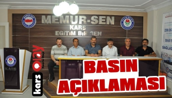 Kars Olay-Memur-Sen Kars İl Temsilciliği, sendika şube başkanları ile birlikte 5. Dönem Toplu Sözleşme görüşmeleri ile ilgili basın açıklaması yaptı. Basın açıklamasını Büro Memur Sen Kars Şube Başkanı Ahmet Adıgüzel okudu.
