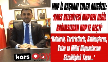 Kars Olay-MHP Kars İl Başkanı Tolga Adıgüzel, Sözcü Gazetesi'nde Evren Demirbaş imzasıyla çıkan "Kars Belediyesi’ne haciz geldi" haberiyle ilgili olarak bir açıklama yaparak "hainlerin, teröristlerin, satılmışların, vatan ve millet düşmanlarının Sözcülüğünü yapan Sözcü Gazetesine ve bu habere imza atan Evren Demirdaş’a sesleniyorum!" dedi.