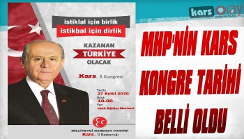 ‘İstiklal için birlik, istikbal için dirlik, Kazanan Türkiye olacak’ sloganıyla başlatılan Milliyetçi Hareket Partisi 13. Olağan Kongre süreci kapsamında 15 Ağustos 2020 tarihinde Kars ilimizin ilçe kongreleri büyük bir coşkuyla başlamış olup 5 Eylül 2020 günü merkez ilçe kongremizle tüm heyacanı ve canlılığı ile teşkilatlarımıza yakışır bir şekilde tamamlanmıştır.