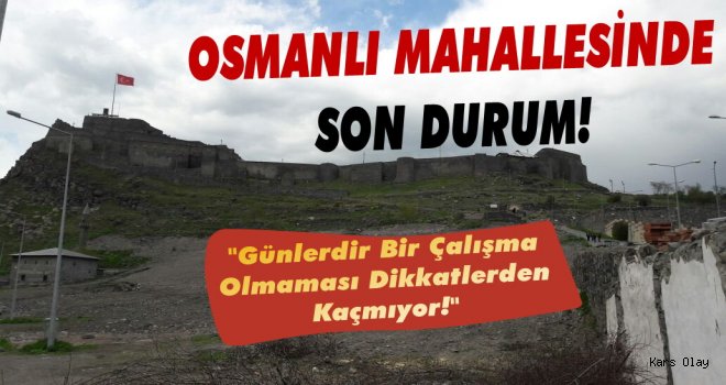 Kars Olay- Kars'ta Osmanlı Mahallesi Projesi kapsamında kalan Kars Kalesi eteklerinde ki alanda devam eden yıkım çalışmalarının bitmesinin ardından günler geçmesine rağmen bir çalışmamanın olmaması dikkatlerden kaçmıyor. Yıkım çalışmalarının tamamlanıp ama şuan herhangi bir çalışma başlamaması ise Osmanlı Mahallesinin son durumunu merak eden vatandaşlar tarafandan şimdiden merak edilmeye başlanıyor. 28-05-2017 tarihinde çekilen fotoğraflar ise bu gün akşam saatlerinde çekildi. İşte Osmanlı Mahallesine ait bir çalışmanın henüz başlamadığını gösterir o fotoğraglar.