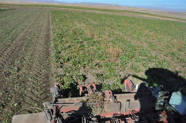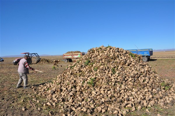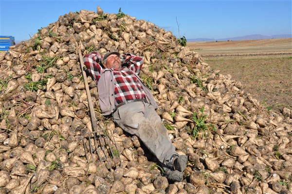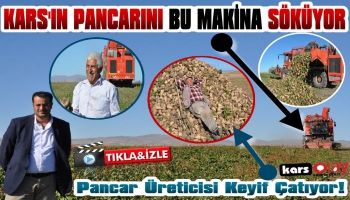 Kars Olay-Akyaka İlçesi’ne bağlı Esenyayla Köyü’nde Oktay Demir isimli tarla sahibi, 20 dönümlük pancarını 2 saatte sökerek tertemiz pancarlarını tarlasına bırakan makinenin sunduğu kolaylıklar karşısında sevincini pancarların üzerine yatıp dinlenerek keyif çattı.