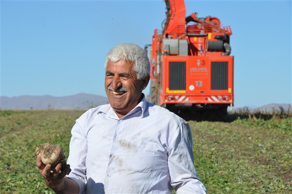 Devasa makine bugün de Akyaka ilçesinin Esenyayla Köyü’nde 65 yaşındaki Oktay Demir’in 20 dönümlük pancar tarlasına gitti. Pancarlarını 2 saatte söken makinenin sunduğu kolaylıkları görünce keyfine keyif katan Oktay Demir, elindeki dirgenle pancarların üzerine uzanıp keyif çattı. Ellerini boynuna atan, gözlerini yumarak güneşli havanın da etkisiyle dinlenmeye çekilen Oktay Demir, Kars Ziraat Odası Başkanı Adem Ertaş ve yönetimine bol bol dua ve teşekkür etti. Makine olmadan önce çoluk çocuk, eşi ve işçileriyle yaklaşık 1 ay pancar söktüklerini hatırlatan Oktay Demir, bu makinenin gelmesiyle artık eşini tarlaya getirmediği için çok mutlu olduğunu dile getirdi.