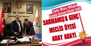 20 yaşında siyasette yeni bir hamle yapmak isteyen Alper Yıldırım Sarıkamış Belediyesi Meclis Üyeliği için aday adayı oldu. Dosyasını tamamlayarak İlçe Başkanı Serkant Aykul'a teslim eden Alper Yıldırım parti binasından ayrıldı.