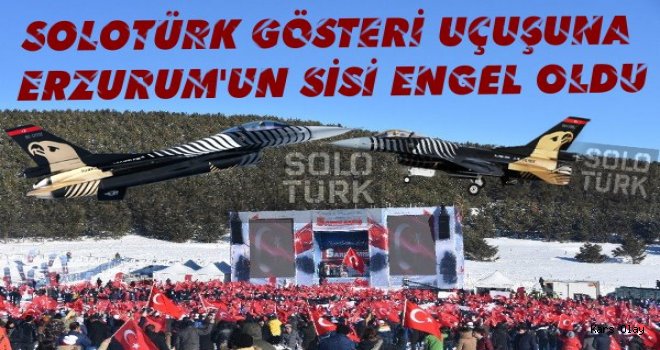 Sarıkamış Şehitleriyle Yürüyor etkinliğinde bugün saat 13.00’de - Yukarı Sarıkamış Şehitliğinde gerçekleştirilecek olan gösteri uçuşuna Erzurum'da yaşanan yoğun sis ve hava muhalefeti nedeniyle yapılamaması tören alanında bulunan on binlerce vatandaşı üzdü. SoloTürk Gösteri Uçuş Ekibi adına platformda kısa bir konuşma yapan ekip temsilcisi, vatandaşlardan özür dileyerek sinevizyon aracılığı ile Sarıkamış Şehitleri için gerçekleştirdikleri özel gösteri uçuşunu vatandaşlara izletti.