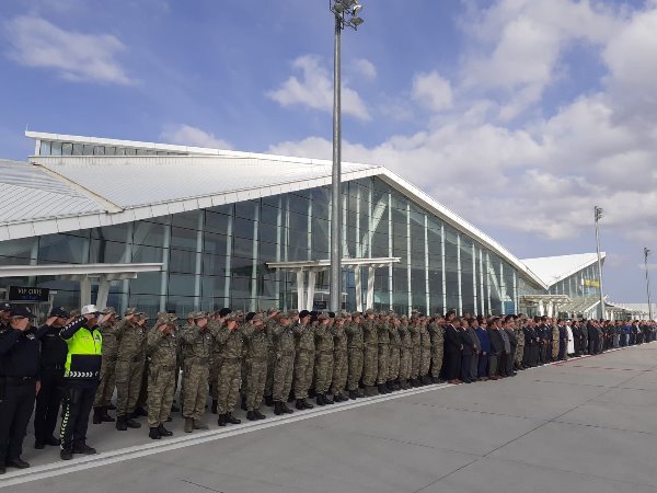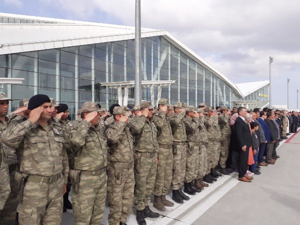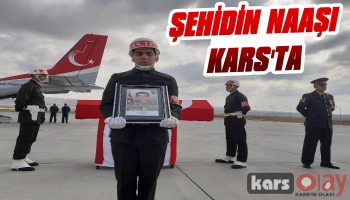Kars Olay- Kars Harakani havalimanında şehit askerin cenazesini Vali Türker Öksüz, askeri ve mülki erkanın yanısıra şehit askerin yakınları karşıladı.