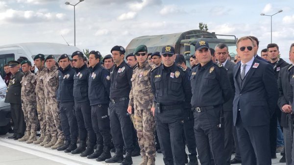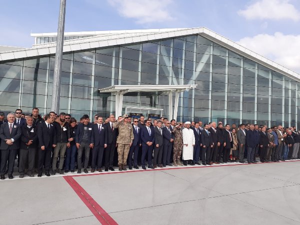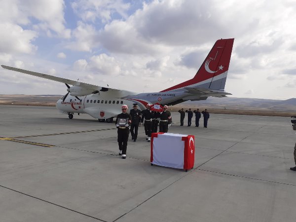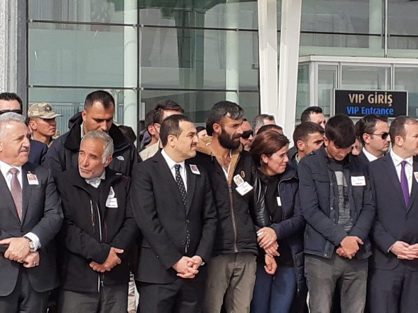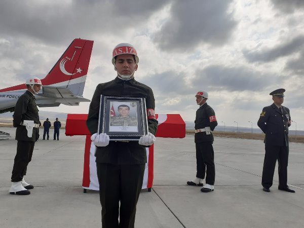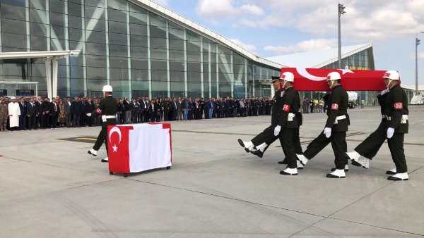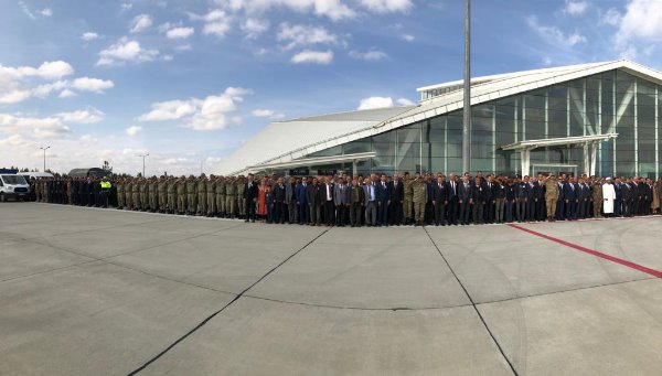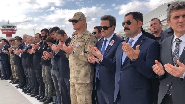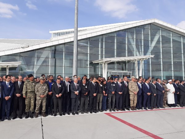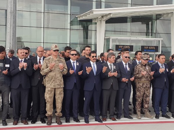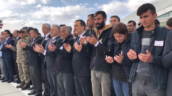 Askeri uçaktan indirilen şehit askerin özgeçmişinin okunmasından sonra Müftü Yusuf Eviş, dua okudu. Eviş, şehit asker için törene katılanlardan helallik istedi.