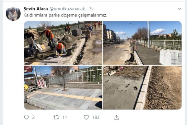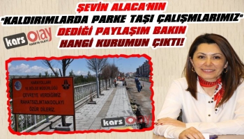 Kars Olay- Kars Belediyesi Başkan Yardımcısı Şevin Alaca tarafından sosyal medya hesabından 11 Mayıs günü yapılan " "Kaldırımlara parke döşeme çalışmalarımız." paylaşımının gerçeği yansıtmadığı ve Şevin Alaca'nın daha belediye çalışmalarından da tam net bilgisi olmadığı ortaya çıktı. Olayın fark edilmesi üzerine Alaca sosyal medya hesabından attığı tweeti sildi.