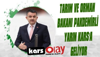 Kars Olay- Tarım ve Oran Bakanı Bekir Pakdemirli bir dizi inceleme ve toplantılara katılma üzere yarın (salı) günü Kars'a geliyor.