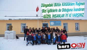 Kars Olay- Kars Toplum Gönüllüleri Vakfı üyesi öğrenciler Karsın Akyaka İlçesi YerliKavak Köyü İlköğretim Okulu'nda öğrenim gören minik öğrencilerin minik kalplerine dokundular.