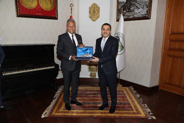 Vali Türker Öksüz, Türkiye Seyahat Acentaları Birliği (TÜRSAB) Başkanı Firuz Barbaros Bağlıkaya ve Yönetim Kurulu Üyelerinin ziyaretinden duyduğu memnuniyeti dile getirerek nazik ziyaretlerinden dolayı kendilerine teşekkür etti.