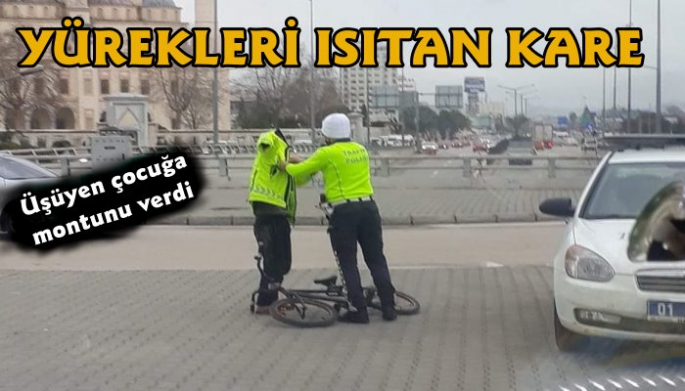 Kars Olay- Polis ekipleri, karşıdan gelen 17 yaşlarındaki bisikletli çocuğun üzerinde montu, ayağında da çorabının olmadığını fark etti. Bu sırada polislerden Ramazan Yıldırım, üzerinde bulunan polis montunu çıkartarak çocuğun üzerine giydirdi. O anlar ise bir vatandaş tarafından cep telefonu kamerasıyla çekilerek sosyal medya platformunda paylaşıldı.