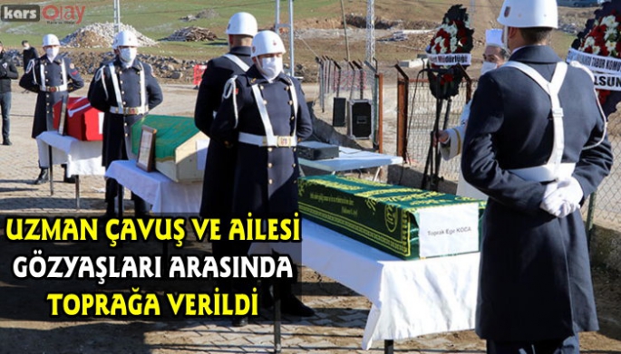 Kars Olay- Erzurum’un Horasan ilçesinde buzlanan yolda kontrolden çıkarak yolcu otobüsüyle çarpışan otomobilde hayatını kaybeden Jandarma Uzman Çavuş Asil Koca ile eşi ve çocuğu memleketinde kılınan cenaze namazından sonra gözyaşları arasında toprağa verildi.