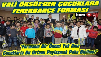Kars Olay- Kars Valisi Türker Öksüz, Aile, Çalışma ve Sosyal Hizmetler İl Müdürlüğü tarafından düzenlenen forma dağıtım etkinliğine katılarak 1907 Fenerbahçeliler Derneği tarafından gönderilen formaları çocuklara dağıttı.