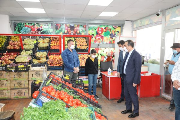 Esnafları ziyaret eden Vali Öksüz, Koronavirüs tedbirleri kapsamında alınan tedbirlerle uyulup uyulmadığını denetleyerek, uyarılarda bulundu.