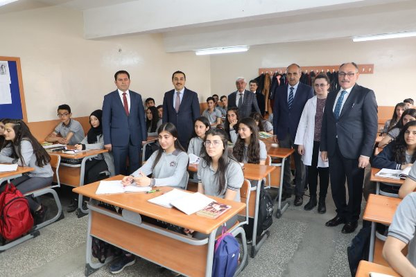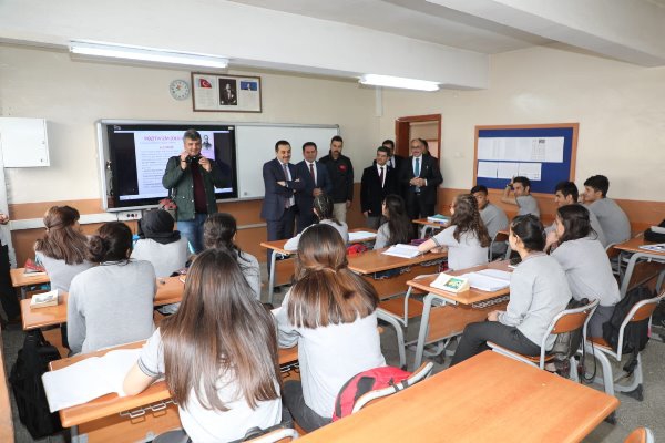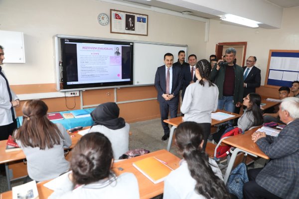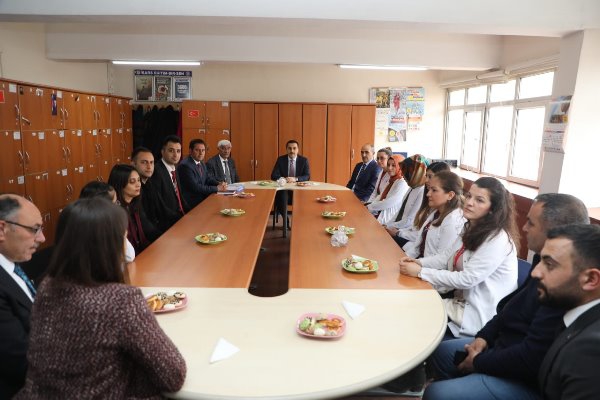Kars Olay-İl Milli Eğitim Müdürü Gökhan Altun ile okul yöneticilerinin hazır bulunduğu ziyarette sınıfları gezerek öğrenciler ile bir süre sohbet eden Vali Öksüz, daha sonra okulda görevli öğretmenler ile toplantıda bir araya geldi.