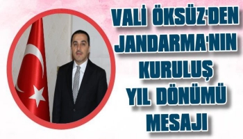 Kars Olay-Kars Valisi Türker Öksüz Jandarma Teşkilatının 180. Kuruluş Yıl Dönümü dolayısıyla yayınladığımı mesajında şu ifadelere yer verdi: "