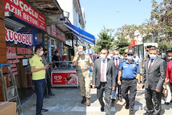#SağlıkİçinHepimizİçin sloganıyla gerçekleştirilen denetime katılan Kars Valisi Türker Öksüz, Kazımpaşa ve Faikbey Caddesindeki esnafları ziyaret ederek maske, sosyal mesafe ve temizlik kuralları titizlikle uyulması konusunda esnaf ve vatandaşlara uyarılarda bulundu.