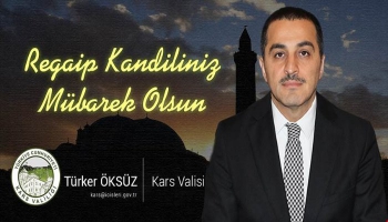 Kars Olay- VKars Valisi Türker Öksüz yayınladığı mesajda: "Rahmeti, bereketi ve mağfireti bol üç ayların manevi iklimine girildiğinin habercisi, Ramazan Ayının da müjdecisi olan bir Regaip Kandili’ne daha kavuşmanın huzur ve mutluluğunu içerisindeyiz.