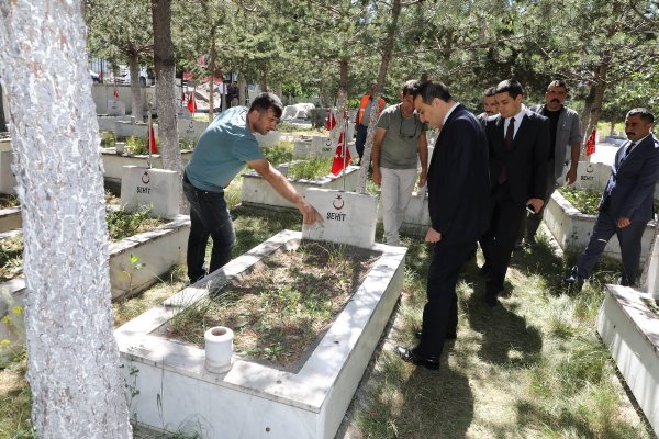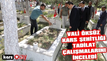 Kars Olay-Kars Valisi Türker Öksüz, tadilat çalışması yapılan Kars Şehitliğinde incelemelerde bulunarak yetkililerden bilgi aldı. Çalışmaların bir an önce bitirilmesi talimatını veren Vali Öksüz, ziyarete gelen şehit ailesi ile de görüşrek, tüm şehitleri rahmetle andı. Şehit ve Gazi ailelerinin Devlet olarak her zaman yanlarında olduklarını belirten Kars Valisi Türker Öksüz Şehit ailelerine başsağlığı dileklerini iletti.