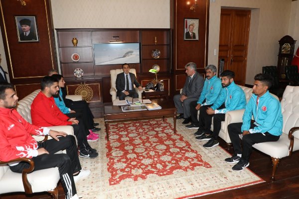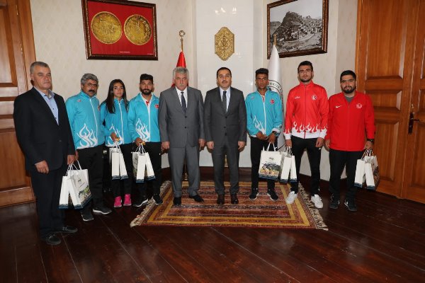 Kars Olay- Kars Valisi Türker Öksüz, Uluslararası yarışmalarda dereceye giren sporcular; Atletizm dalında 1500 metrede Balkan Gençler Şampiyonasında Balkan 1’ncisi Tuğba Toptaş, Avrupa Dağ Şampiyonasında İsviçre Takım halinde Avrupa 5’ncisi Kemal Yıldırım, Ukrayna’da yapılan 1500 metrede Uluslararası Turnuvada 3’ncüsü Hakan Buğanlı, Kayak dalında U16 Uluslararası Çocuk Kupası Slalom yarışmasının 2’ncisi Zerda Tımarlı ve Bünyamin Çelik, Boks dalında Rusya 22 yaş altı Avrupa Boks Şampiyonasında 64 kiloda 2’nci Tuğrulhan Erdemir, Çek Cumhuriyeti Uluslararası Boks Turnuvası 2’ncisi Necat Ekinci ile Gençlik ve Spor İl Müdürü Gürsel Polat ve antrenörleri makamında kabul ederek sporculara çeşitli hediyeler verdi.