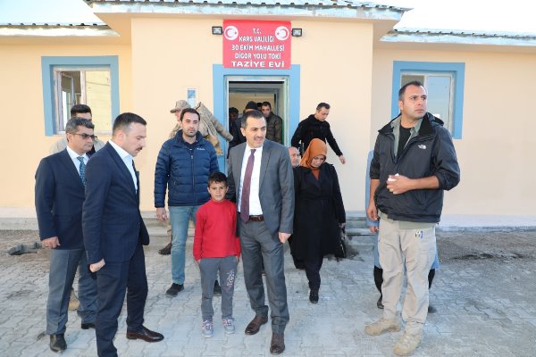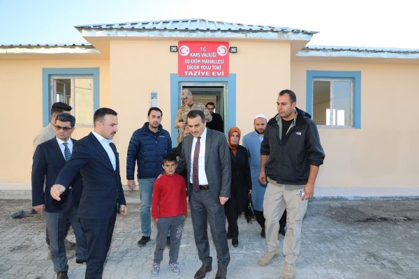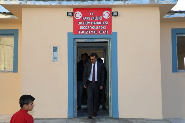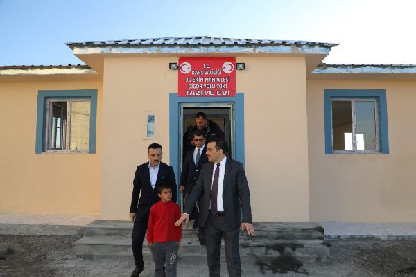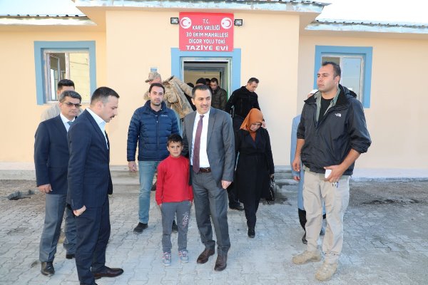 Kars Olay-Kars Valisi Türker Öksüz, Merkez 30 Ekim Mahallesi, Merkez Yalınkaya ve Soylu Köylerinde Köylere Hizmet Götürme Birliği tarafından yaptırılan ve inşaat çalışmaları bitme aşamasına gelen taziye evlerinde incelemelerde bulunarak yetkililerden bilgi aldı.Yapılan çalışmaları yerinde inceleyen Vali Türker Öksüz yapılan çalışmalar dolayısıyla teşekkür ederek işlerin kar yağmadan biran önce bitmesi için talimat verdi.