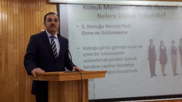 Programa katılan Kars Valisi Türker Öksüz burada kursiyerlere hitaben yaptığı konuşmada; Kars'ta her geçen gün ivmelendiği, önde gelen şehirlerden birisi olmuş durumda. Artık yılda 200 bin yerli ve yabancı turistin uğradığı bir kent haline geliyoruz. Elbette turizm sektörü şehrimizi ekonomik olarak besleyen, şehrimize yön veren sektörlerden birisi. Turizm alanında faaliyet gösteren tüm kamu ve özel sektörlerimiz, ulaşım , konaklama ve yeme içme gibi sektörlerimizin çalışanları yani kısaca bu alanda çalışan herkesin elini taşın altına koyması gerekir." dedi.