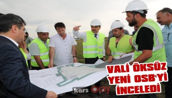 Kars Olay-Kars Valisi Türker Öksüz, Kars İhtisasa Dayalı Besi Organize Sanayi Bölgesi şantiye alanında incelemelerde bulunarak yetkililerden brifing aldı.