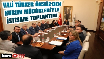 Kars Olay- Kars Valilsi Türker Öksüz’ün Başkanlığında; idarede birliğin sağlanması, işlerin gözden geçirilerek düzenlenmesi, kurumların ahenkli çalışması için gereken tedbirlerin alınmasını görüşmek ve kararlaştırmak amacıyla İl Müdürleri toplantısı yapıldı.