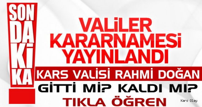 Kars Olay- Resmi Gazete'nin bugünkü sayısında yayımlanan atama kararına göre, Kars Valisi Rahmi Doğan ise herhangi bir ile atanmayarak Kars Valiliği'ne devam etti. Kırklareli Valisi Orhan Çiftçi ile Sinop Valisi Hasan İpek merkeze alındı.