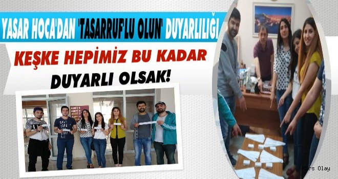 7 kişilik “Ha Gayret!” isimli öğrenci grubu Yrd. Doç. Dr. Yaşar Kop öncülüğünde başlattıkları çalışmalarda ilk olarak slogan tespitinde bulundular. Özlü sözler üzerinde araştırma yapan öğrenciler “Allah İsraf Edeni Sevmez”, “En Ucuz Enerji Tasarruf Edilen Enerjidir”, “Akan Su Geri Gelmez”, ”İsraf Herşeyi Azaltır”, “Tasarruf Ediyorum Doğamı Koruyorum”, “Yarının Suyunu Korumak İçin Yarın Çok Geç Olacak.”, “Damlayan Bir Musluk Günde 7 Kova Su Harcar”, “Gereksiz Harcanan Enerji Kaybedilen Emektir”, “Biz Tutumlu İnsanlarız Para Dolu Kumbaramız” sloganlarının yer aldığı 2 bin 200 adet özlü söz bastırdılar. Öğrenciler bastırılan bu özlü sözleri Kars merkezdeki Kafkas Üniversitesi’ne bağlı Eğitim Fakültesi, İktisat ve İdari Bilimler Fakültesi, Mimarlık ve Mühendislik Fakültesi, Fen Edebiyat Fakültesi, İlahiyat Fakültesi, Devlet Konservatuarı, Yabancı Diller Fakültesi, Veteriner Fakültesi, Tıp Fakültesi, Meslek Yüksek Okulu, Sağlık Meslek Yüksek Okulu, merkezi kafeterya ve merkezi dersliklere ve Davud-i Kars Camii’ne dağıttılar. Ayrıca musluk, elektrik kontakları ve prizler üzerine de yapıştırılarak tüm dikkatler tasarrufa çekildi.