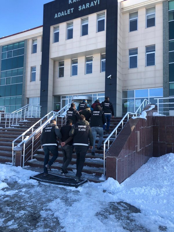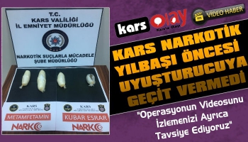 Kars Olay-İki İran ve bir Türk Uyruklu şahsın uyuşturucu ticareti yapmak maksadıyla Kars’a geleceği öğrenildi. Yapılan takip neticesinde 04 * ** plakalı araç ve araç içerisinde bulunan 4 şahıs Bölge Trafik Uygulama noktasında durduruldu. 2 İran uyruklu şahsın üst aramasında 135 Gram ve 10 Gram ağırlıklarında iki farklı türde ve yaklaşık 700 kişiyi zehirleyebilecekleri miktarda uyuşturucu madde ele geçirildi.