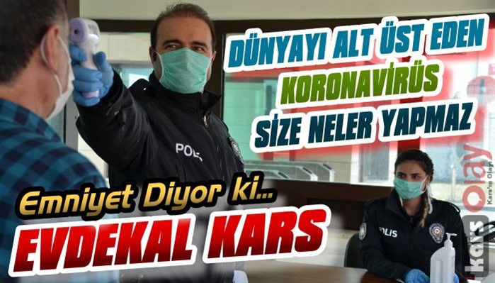 Kars Olay- Kars İl Emniyet Müdürlüğü'nden yapılan açıklamada; "Dünya Sağlık örgütünce çok tehlikeli pandemi olarak ilan edilen coronavirüs (Covid 19) salgının yayılarak vatandaşımızın hayatını tehdit etmesini engellemenin en temel yolu Vatandaşlarımızın evlerinde sosyal izolasyona geçmesidir.
