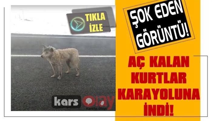Kars Olay-Ağır kış şartlarının hüküm sürdüğü Kars'ta yaban hayatı karla kaplı arazide yiyecek bulma sıkıntısı çeken kurtlar, Kağızman karayoluna kadar indi. Karayolunda yiyecek arayan kurtları sürücüler cep telefonlarıyla görüntüledi. Karayolunda araçlardan korkmadan gezinen kurtu cep telefonu kamerasıyla kaydeden sürücüler, biraz ileride bekleyen başka bir kurtu da görüntüledi. Karayolundaki kurtların görüntüsünü alan sürücüler, yaklaşık 1 kilometre mesafede arazide gezinen kurt sürüsü gördüklerini de bildirdi.