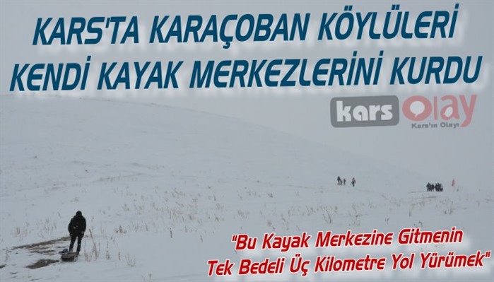 Kars Olay-Kars Merkeze 15 km mesafede bulunan Karaçoban Köyü'nde bir araya gelen dört arkadaş bu yolla kar ve kışı eğlenceli hale getirmeyi başardılar.