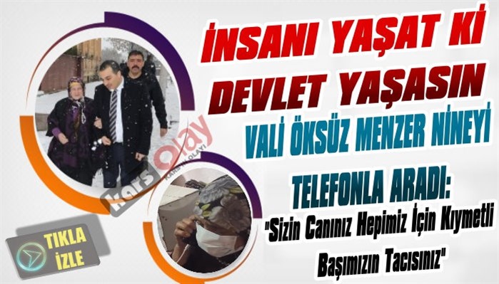 Vali Türker Öksüz, Menzer Nine ile telefonda görüşerek kendi sağlığı için evde kalması gerektiğini ve ihtiyaçlarının karşılanacağını söylyerek; "Sizi dışarı çıkarmamamızın nedeni sizinle ilgili değil, sizler, bu hastalığa daha kolay yakalnırsınız. Onun için sizleri korumak için sizi dışarı çıkartmıyoruz. Sizin canınız hepimiz için kıymetli, başımızın tacısınız. Onun için daha evinizden çıkmayın ki bu hastalığa yakalanmıyasınız, Allah korusun hasta olmayın, bir hayati probleminiz olmasın, biraz daha dayanalım inşallah bu süreci atlatacağız. Kendine iyi bak Allah'a emanet ol, bir ihyicanız olduğu zaman bizim vefa sosyal destek grubumuzuzdaki görevlilerimiz, her zaman sizlerin ihtiyaçlarına, taleplerine karşı hazırdır, sizlere hizmet etmeye hepimiz hazırız." dedi.