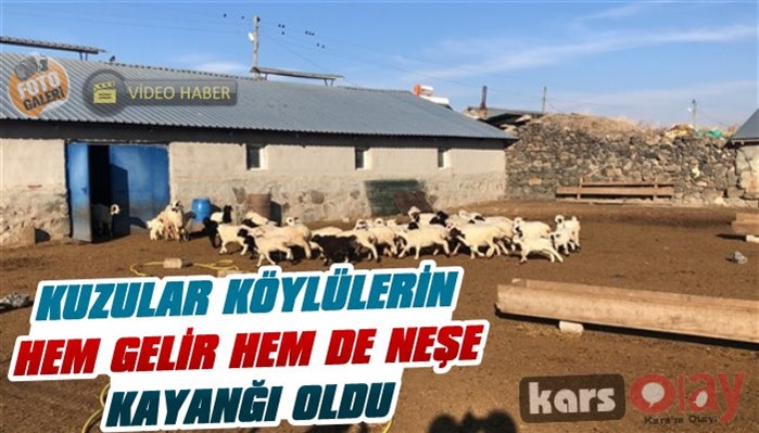 Kars Olay-Kuzular kış sessizliğini bozdu. Meleşmeleriyle köye neşe seçen kuzuların karınlarını doyurduktan sonra ahır önünde oyun oynamaları ilgiyle izlendi. Koyunları peşlerine takan kuzular bir sağa bir sola kaçışmaya başladı. Bunu defalarca yapan kuzular yorulduktan sonra yeniden ahıra girdiler.